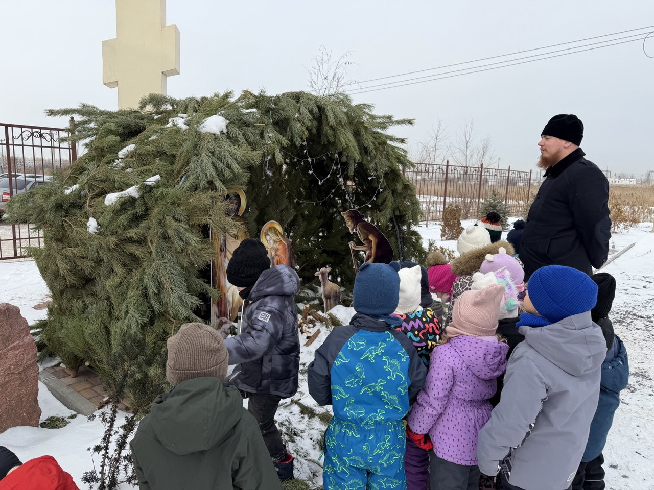 21 января 2026 года Пантелеимоновский храм города Батайска посетили две группы воспитанников детского сада № 31 «Кувшинка». Встреча прошла в рамках регулярного взаимодействия прихода с дошкольным учреждением, направленного на духовно-нравственное воспитание подрастающего поколения и знакомство детей с традициями Русской Православной Церкви. Настоятель храма иерей Евгений Сергеевич Михайлов в доступной форме рассказал воспитанникам о празднике Крещения Господня и его значении как события Богоявления. Особое внимание было уделено смыслу евангельского повествования о Крещении Спасителя и христианскому пониманию освящения воды. Затем детям была проведена краткая экскурсия по храму: ребята познакомились с устройством храма, назначением предметов церковного убранства и правилами благоговейного поведения в нём. Также воспитанникам был показан Рождественский вертеп.